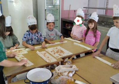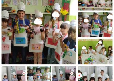 Ученици су предложили да направимо “Чаробне кашике” које би нас водиле на различите места и представљали лепоте наше земље. Били су веома вредни и креативни доносили су чиз кејк за који су смислили рецепт по њиховом укусу. Правили питу са јабукама за другаре и запослене у школи, водећи рачуна о хигијени и одговорности за здравље. Донели смо од куће разне џемове и правили кецеље одговорности- наш пасош и чувамо их у “Врлинотеци” као подсетник да свако дело има своју одговорност како према учионици, тако и ширење поузданости да другари из боравка имају одговорност да чувају заједнички простор за разне активности у њему. Редари редовно заливају биљке, а сви заједно се труде да буду добри домаћини приликом дружења са осталим одељењима. Није им тешко да среде заједно учионицу – сви имамо одговорност