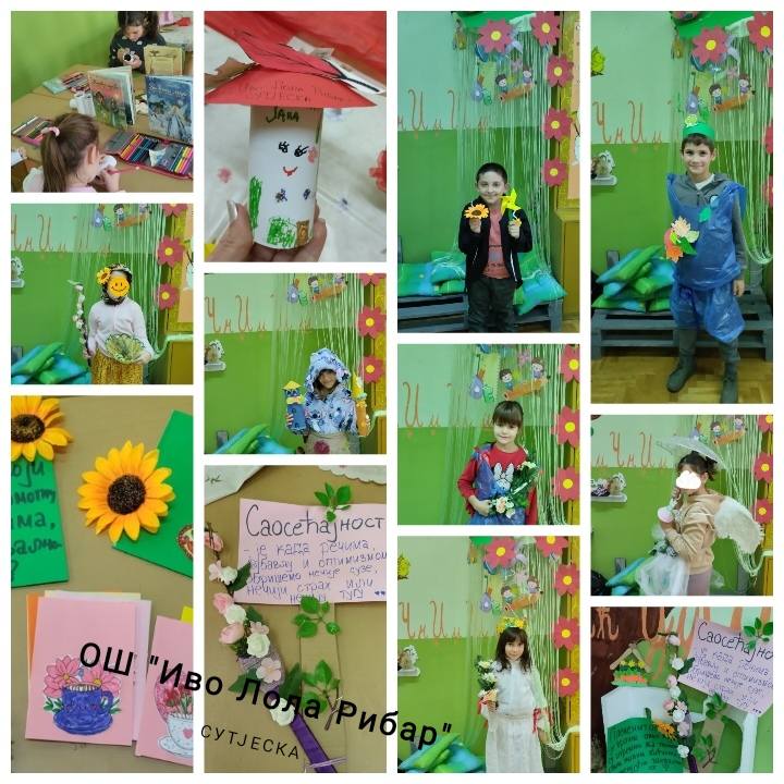 Ученици су навели све ове примере, воле када имају са четвртакињама час физичког и здравственог васпитања па размењују игре, са ученицима другог разреда воле да се играју напољу у школском дворишту и деле своје играчке, од петака често слушају приче о догодовштинама из учионице. Направили смо наш простор за телепорт где се можемо претворити у Белу вилу, Видарку, Необичног принца, краља Сунцокрета, Еко вила, Фолклорашица…припремили поклоне и ширили емпатију и љубав са чаробним кућицама